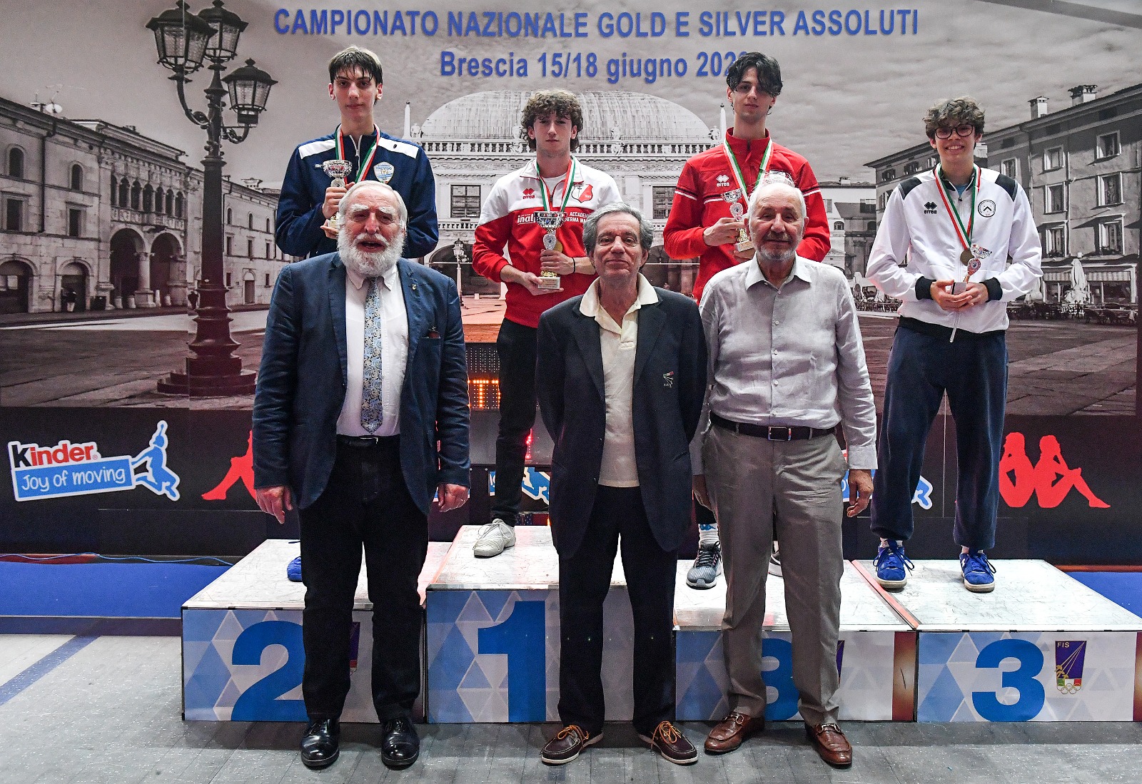 La prima competizione che si è conclusa in questa giornata è quella della spada maschile gold. Vittoria per Pietro Tassinari dell’Accademia Scherma Marchesa Torino. Il classe 2001 ha avuto la meglio nel match conclusivo con il punteggio di 15-8 su Dario Benetti della Scherma Treviso M° Ettore Geslao. Medaglia di bronzo per Leonardo Pitticco dell’Udinese Scherma e per Tommaso Raffaele della Scherma Cariplo Piccolo Teatro Milano sconfitti rispettivamente dal vincitore per 15-12 e dall’argento 15-7.